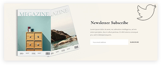 Integrated social share buttons, a newsletter popup feature & Instagram as well as Twitter feed widgets let you keep in touch with your audience with ease.