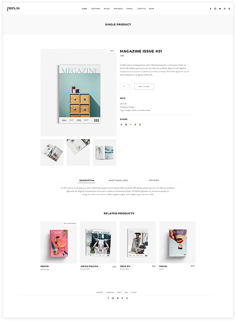 Creating an online shop and reaching out to your buyers in a stylish manner is effortless with Journo’s collection of simply remarkable premade shop templates.